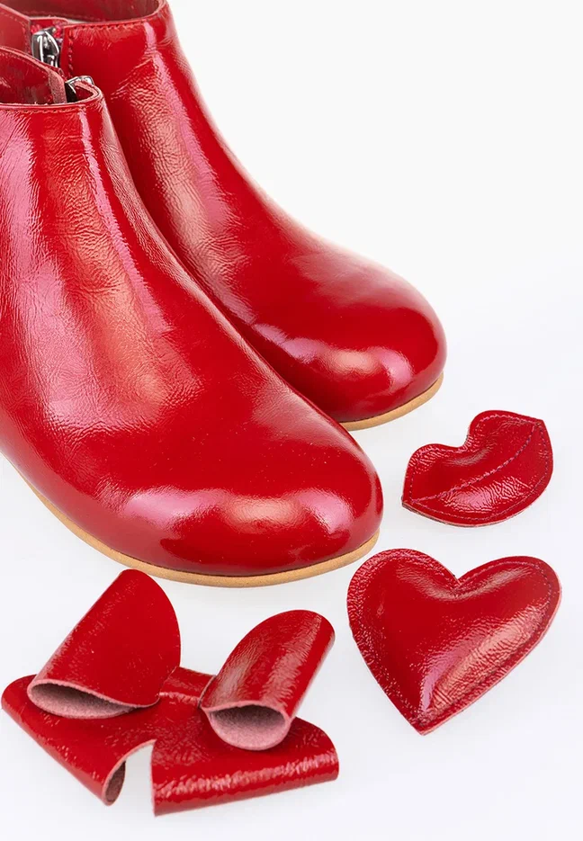 Идеальные базовые ботиночки, которые легко станут акцентными благодаря сменному декору. В комплекте идут бантики, сердечки и губки. Выполнены из натуральной кожи как внутри, так и снаружи. Подошва из искуственного материала.
